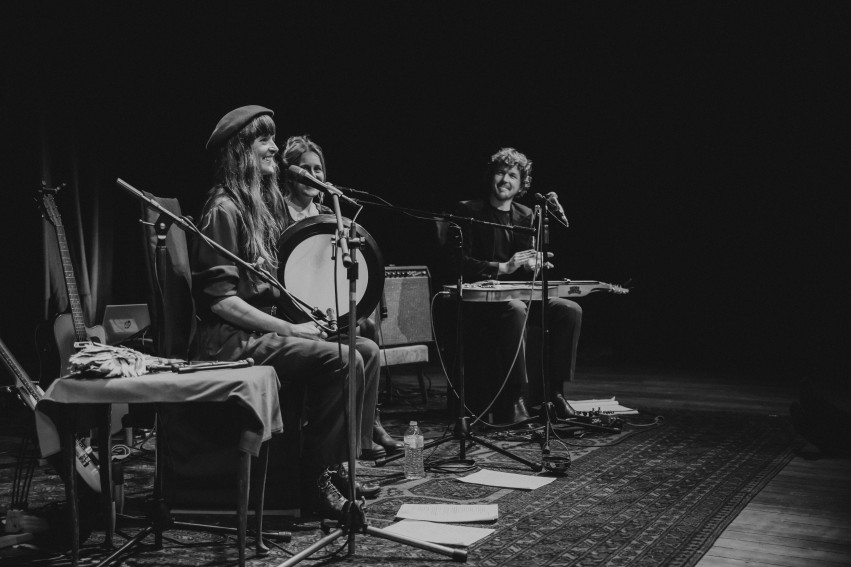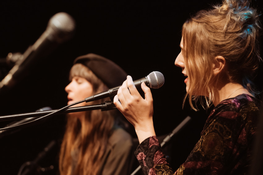 Their live shows have an undertone of subtle humour and are an ode to grief, longing; love and beauty. They offer moments of spontaneous lilting vocals in which their harmonies open up a sonic world inviting the audience into deep mystery.